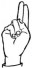 На ћирилици написано ДАМИР ГАЋЕ састоји се из 9 слова [?]. Исписано ћириличном једноручном азбуком за глувонеме: